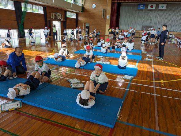 今日は全校でスポーツテストを行いました。体育館で、上体そらし、立ち幅跳び、反復横跳び、長座体前屈などの種目に挑戦しました。子どもたちで協力しながら記録をとったり、ちゃんと整列したりすることができ、スムーズにテストも終わることができました。みんな記録はどうだったかな?