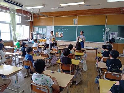 今年は2年生のお勉強の様子を見学したり、1年生教室で教科書を見たりする活動もしました。