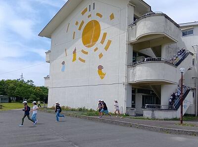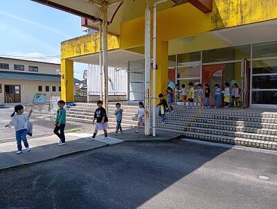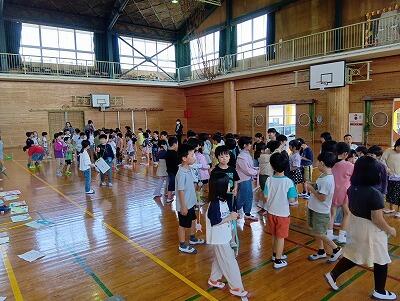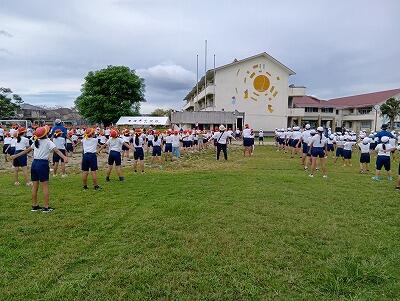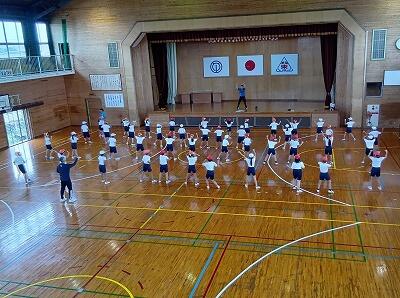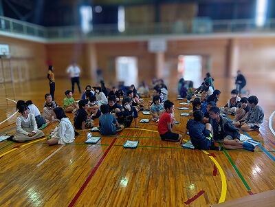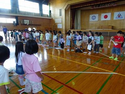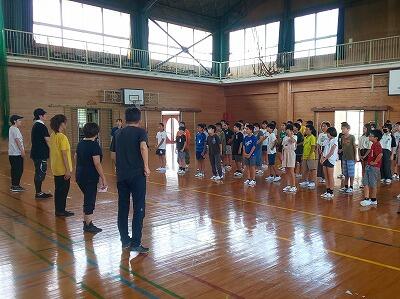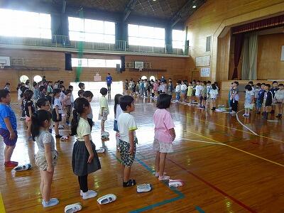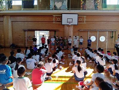 朝6時に起床し、岡富小学校と合同で「朝のつどい」をしました。
