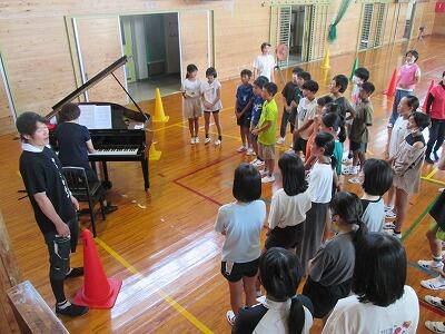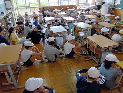熱中症対策のため、音楽室と各教室等をつないでオンラインで実施しました。