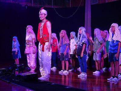 鑑賞教室には6年生も参加するため、9月3日(火)に本番に向けての「ワークショップ」を劇団関係の方と行いました。歌や踊り、そしてカーテンコールの練習を何度も行いました。