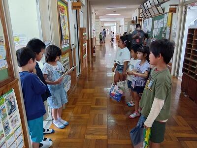 まず、2年生と3年生の代表児童が作文発表をしました。この2学期にがんばることとして、「えしゃく」「算数」「手つだい」や「漢字」「わすれものをしない」こと等を堂々と述べていました。目標に向けてがんばっていきましょう。
