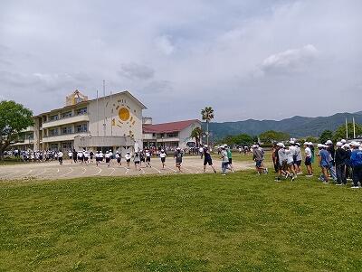 全校児童で、開会式や閉会式など、全体で行動する活動の練習をしました。