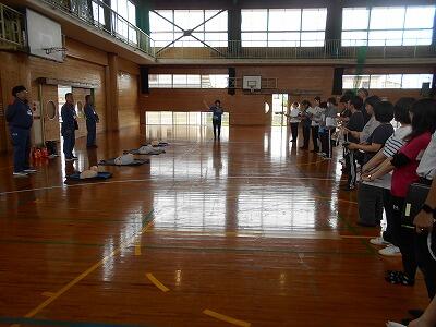 その後は、「さすまた」を使った実技訓練を体育館で行いました。