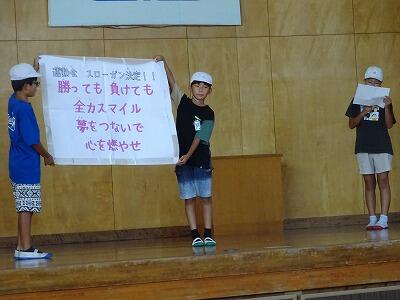 今年の「秋季大運動会」は10月12日(土)に実施予定です。その運動会に向けて、スローガン発表や団の色の決定をしました。