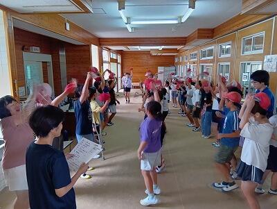 1学期後半、「櫂伝馬踊り保存会」の方にもご指導いただきながら練習を重ねてきました。