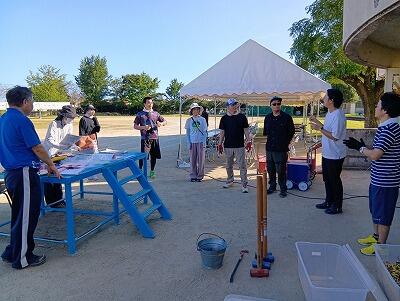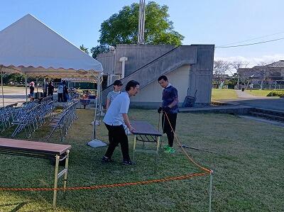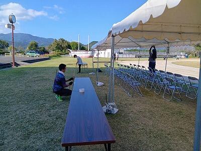 PTA保健体育部の方に協力いただいて、机・イス運びやグラウンド整備、ロープ張り等の活動をしていただきました。