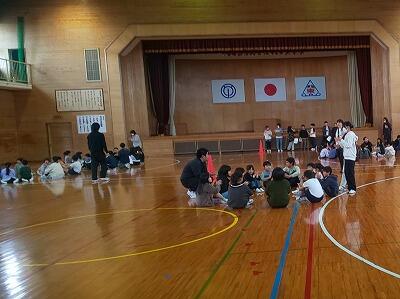 5年生は、星雲高校1年生のお兄さん、お姉さんと簡単な自己紹介をしたあと、好きなものやできることについて話したり、ゲームをしたりしました。