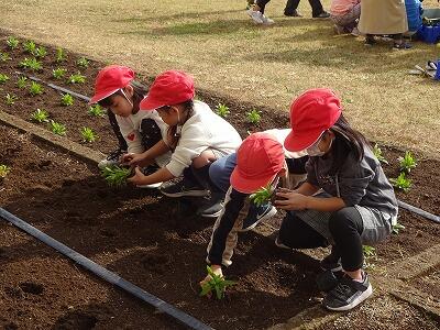 12月に入って、全学年の子どもたちが時間を分けて、学校園・学級園・一人一人のポットに春に向けての花を植えています。技術員さんに教えてもらいながら、やさしく丁寧に花の苗を植えている様子が見られました。下の写真は5年生、1年生、4年生が植えているところです。