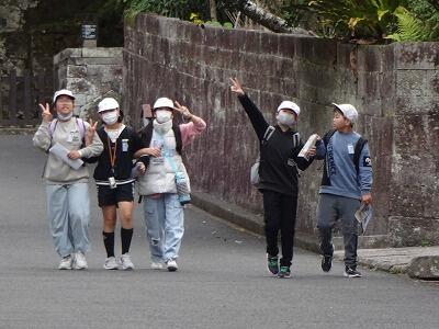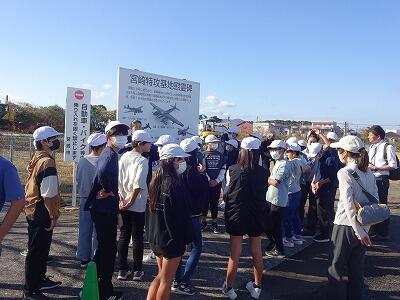 お世話になったホテルを出発して、青島に向かいました。海岸や青島神社周辺を散策しました。その後、宮崎特攻基地遺構に移動して、平和学習を行いました。