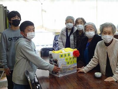 12月19日(火)昼休み時間に近くの社会福祉施設「いこい」の利用者、担当者の方が来校され、手作りぞうきんをいただきました。毎年この時期にぞうきんをいただき、学期末、学年末の大そうじに使わせていただいています。ありがとうございます。