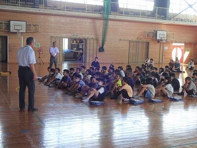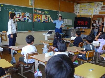 3校時、3年生は延岡警察署の方をお招きして「非行防止教室」を行いました。万引きは犯罪であること、お店に損害を与えるとともに家族を悲しい気持ちにさせることについて、具体的なお話をお聞きすることができました。