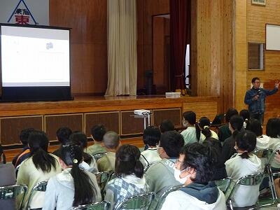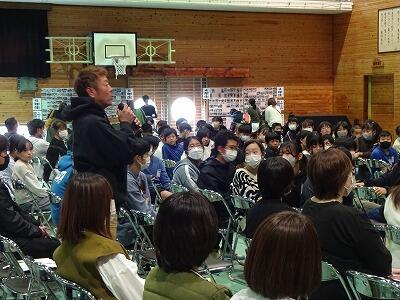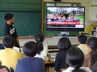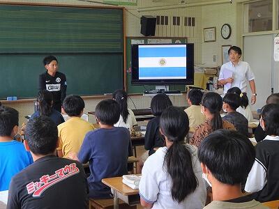 7月12日(水)3校時、延岡市キャリア教育支援センターのご協力で6年生の「よのなか教室」を開催しました。講師はNPO法人Ganar代表理事:富高和幸さんです。富高さんはサッカーのプロを目指すために単身アルゼンチンに渡られた経験をもとに、「世界」基準でご自身が感じたこと、考えたことをエピソードを交えてお話しくださいました。「見て感じて自分で考える」「無理か無理じゃないかは自分で決める」「チャンスをつかめるかは自分の準備しだい」などなど、子どもたちの胸に刺さる言葉を伝えてくださいました。子どもたちが前のめりになって聞いている姿も印象的でした。富高さん、ありがとうございました。