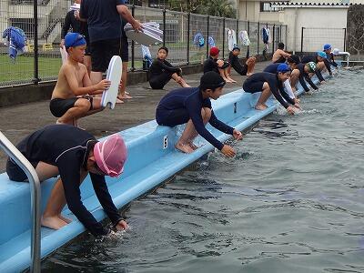 6月15日(木)15:00から、延岡消防署の方3名をお招きして、教職員対象の心肺蘇生法の講習会を行いました。グループに分かれて胸骨圧迫やAEDの使い方について実技訓練を行った後、プールで事故が起こったと想定しての通報や救命行動のシミュレーション訓練も実施しました。今回の講習で学んだことをもとに、安全への意識を一層高めていきたいと思います。