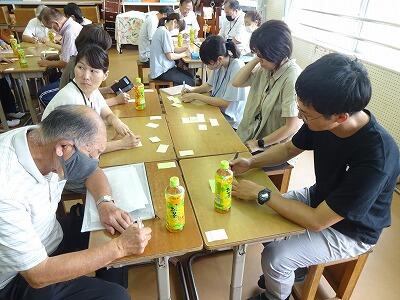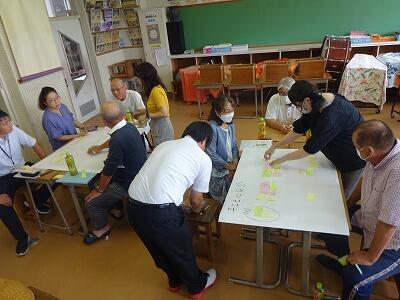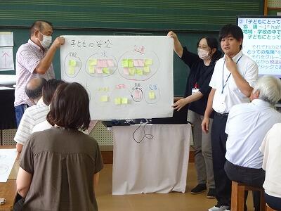 8月25日(金)15:00から音楽室において、コミュニティ・スクール熟議「しゃべり場」を開催しました。学校運営協議会委員の皆様、校区内の区長・公民館長の皆様14名をお迎えして「子どもの安全」をテーマにグループ協議を行いました。各グループにおいて、文字どおり、学校職員と地域の方との積極的な「おしゃべり」が展開され、とても有意義な時間となりました。この場で出された貴重なご意見を「子どもたちの安全」につなげられるように今後取り組んでいきたいと思います。ご参加いただいた皆様、本当にありがとうございました。