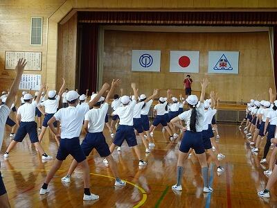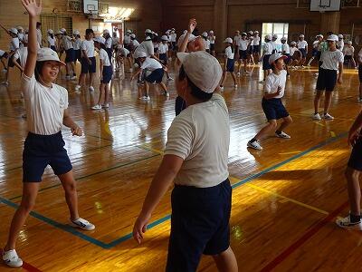 9月5日(火)1校時、5・6年生は体育館で運動会の表現の練習をスタートさせました。6年生は昨年、一度踊っていますが、5年生は今年、初チャレンジです。6年生担任が動きの細かいところまで汗びっしょりになりながら指導していました。子どもたちも5・6年生がそれぞれチェックし合いながら動きを確認していました。これからの練習で、本番どんな仕上がりになるのかとても楽しみです。