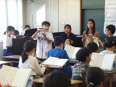 4年生は運動会の練習と同時進行で、11月に開催される市小中音楽祭に向けての練習にも取り組んでいます。10月3日(火)3校時には、4年2組の子どもたちが音楽担当の1組の先生の指導の下、自分が担当する楽器のパート練習をがんばっていました。4年生57名全員で奏でる音の仕上がりがとても楽しみです。