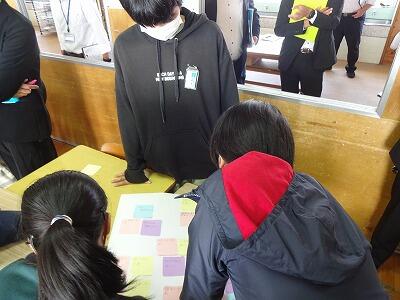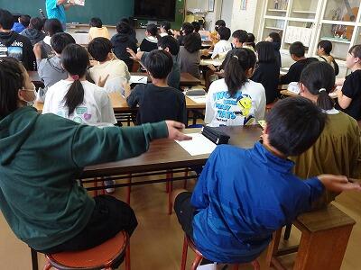 10月24日(火)本校を会場に北部教育事務所管内の初期研修[A日程]が開催されています。3校時は6年1組の総合的な学習の時間の授業公開ということで、本年度北部の小中学校1年目の先生方30名に参観していただきました。これまでの「よのなか先生」授業をもとに「君たちはどう生きるか」というテーマで「働くとはどのようなことなのか」ということについて、グループやクラス全体で意見交換をしながら考えを深めました。今後もよのなか先生のお話を聞いたり自ら調べたりしながら、自分自身の「ドリームプラン」を作成していきます。