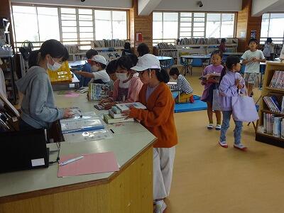 6月14日(水)今日は朝から雨が降ったりやんだりのお天気です。昼休み時間に図書室に行ってみると、本の貸し出し手続きのために並んでいる子どもたちの列ができていました。図書委員会の担当の子もとても忙しそうでした。一人でじっくり本に浸っている子、友達と楽しそうに2人で読んでいる子などなど、読書を楽しんでいる子どもたちの姿が見られてよかったです。
