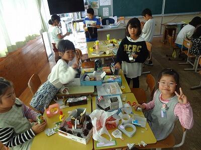 11月8日(水)3・4校時、1年生は生活科で「おもちゃづくり」に挑戦していました。これは11月後半に行われる近くの幼稚園、保育園、こども園の年長さんとの交流会でいっしょに遊ぶおもちゃです。どんなものがあるかは、その時のお楽しみということで、くわしくは触れないでおこうと思います。1年生は自分たちも楽しみながら、一生懸命に作っていました。