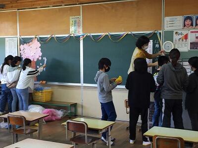4月12日(火)3校時に6年生が、6校時に5・6年生が入学式の準備をしてくれました。体育館の設営や校舎内の清掃、1年教室の飾り付けなど、それぞれの役割をしっかり果たすために本当によく動いていました。さすが、東海東小の高学年です。明日の入学式で46名のピカピカの1年生を迎える準備がバッチリ整いました。ありがとう、5・6年生!