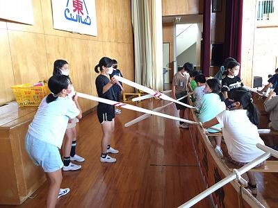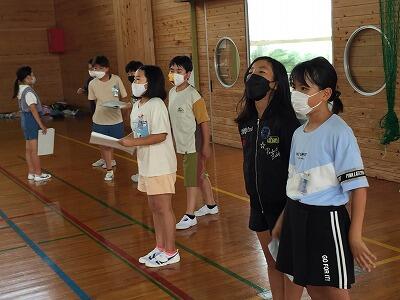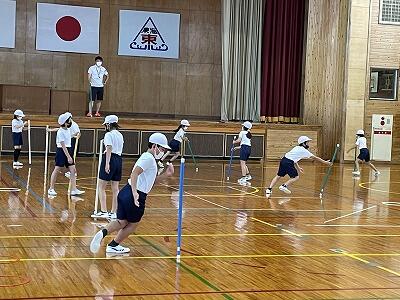 6月23日(木)5校時、地域の「櫂伝馬踊り」の指導者の方に再び来ていただきました。4年生は、夏休みの「市郷土芸能大会」発表に向けて、「櫂伝馬踊り」の練習をがんばっています。今日はこれまでの練習の成果を見ていただき、おほめの言葉や動きや発声の注意点を具体的にアドバイスしていただきました。