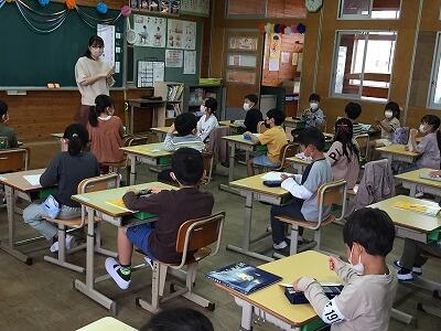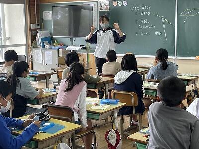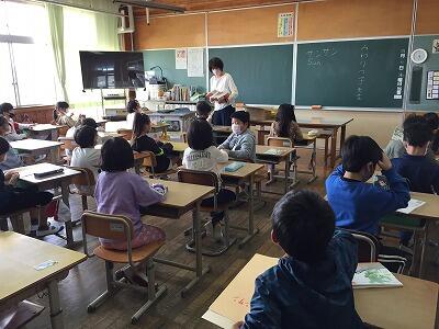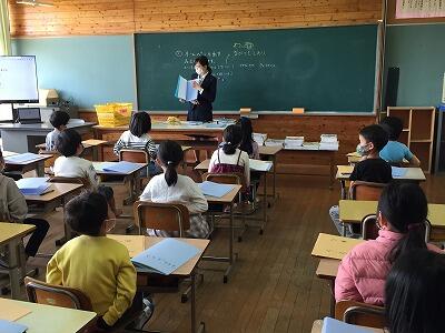 5月25日(水)今日から3・4年生は、本年度新たに本校の担当になった外国語サポーターの先生との外国語活動がスタートしました。2校時は3年生教室から元気いっぱいの声が聞こえてきて、4校時はジェスチャーも交えながら楽しそうに英語を話している4年生の様子が見られました。これからもどうぞよろしくお願いします。