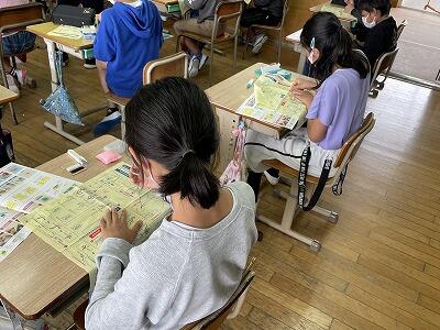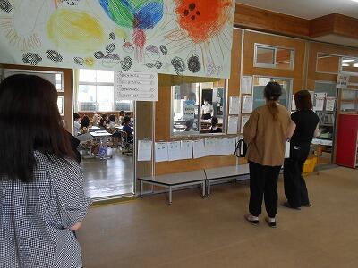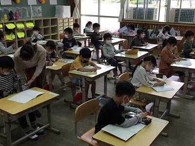 先週末の3連休、そして今週火曜日からの3連休で、今日はあっという間の金曜日です。5月6日(金)この時期、各学年の健康診断が行われていますが、今日は2年生の身体測定と視力検査の日。自分の順番が来るまで、静かに座って待つことができていました。同じ時間、2年生の他のクラスでは図工の授業、1年生も図工の時間でした。2年生はたくさんの色を上手に使って、カラフルな「たまご」を描いていました。1年生ははさみを上手に使って、紙を切ることに挑戦していました。4年生は社会科で、タブレットPCのロイロノートを使って、自分の考えをカードに書き込んでいました。連休終わり間近の授業日でしたが、子どもたちはそれぞれ元気にがんばっていました。