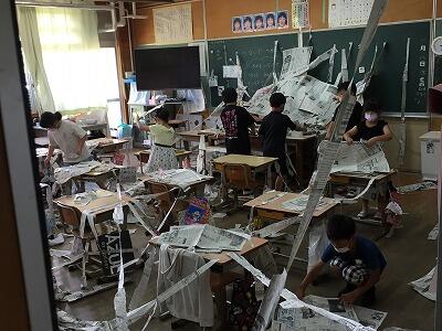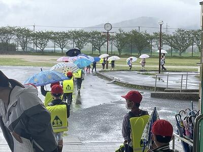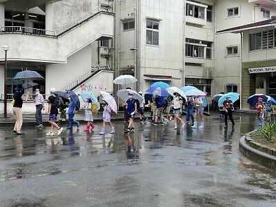 7月4日(月)台風4号接近に伴う強雨のため、給食終了後、全校一斉に地区ごとに下校させます。14:00までに児童が学校から出るのを完了する予定です。下校後は、安全のために自宅で過ごすように指導しています。中学校の部活動中止に伴い、スポーツ少年団の活動も中止をお願いしています。児童の安全のため、保護者の皆様のご理解ご協力をお願いいたします。