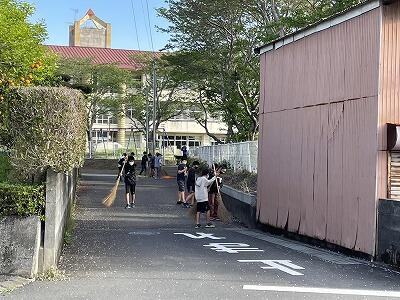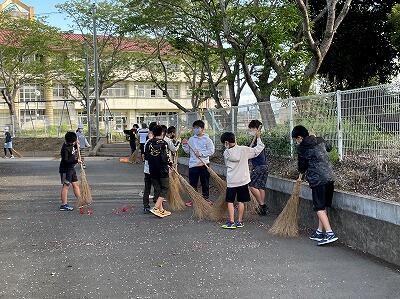 4月15日(金)朝から6年生がボランティアでの朝の清掃活動をがんばっています。4月初めまできれいに咲いていた桜の花びらが道路に散ってしまったのを、南門の外まで出てきて、きれいに掃いてくれました。それから、運動場に落ちていたペットボトルのごみなどを拾ってくれた児童もいました。11日(月)のボランティアの授業をもとに、6年生が学校のいろいろなところに目を向けて、自分たちができることをしてくれています。さすがです!