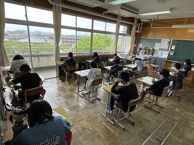 4月19日(火)6年生は全国学力テストに挑戦しました。例年、国語・算数の2教科ですが、今回は4年ぶりに理科も実施されました。6年生は1校時から国語、算数、理科の順に、集中力を持続させながら一生懸命に取り組んでいました。