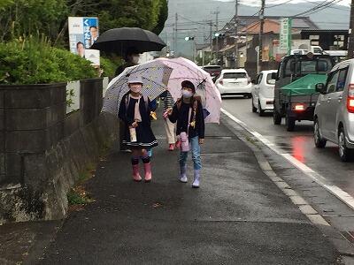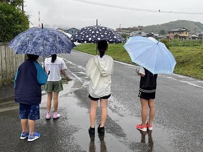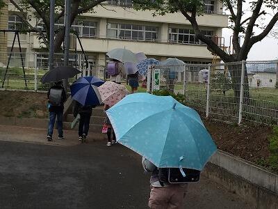 5月13日(金)今日も朝から雨です。そんな中、登校後、朝の準備を終えた5年生が傘をさして児童玄関と北門を行ったり来たりしているので、何をしているのか聞いてみました。4人は運営委員会のメンバーで「登校してきた下級生のお世話をしよう」ということが話し合われて6年生たちは1年生の教室でお世話をしているので、自分たち5年生は校門でのお迎えを担当しているとのことでした。話し合ったことに工夫を加えながら、自主的に取り組んでいる本校の高学年の子どもたち、すばらしいです。