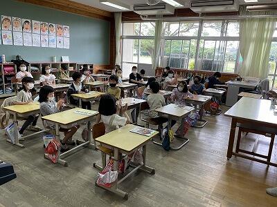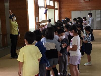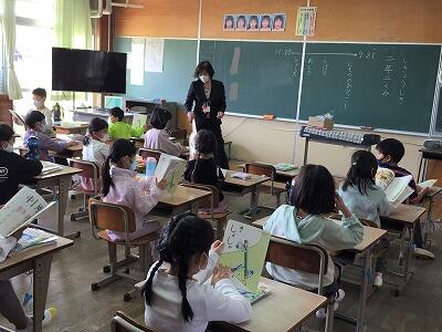 5月20日(金)2~5校時、2年生が1年生に学校のいろいろな場所を案内する「学校たんけん」がありました。これまでたくさんの準備をしてきた2年生、役割分担に沿って、1年生にやさしく丁寧に説明をしていました。体育館で出発を待っている1年生には、絵本の読み聞かせも行われていました。1年生も楽しそうで、2年生がとても頼もしく見えました。