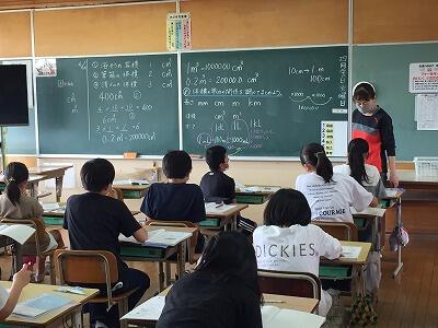 4月26日(火)蒸し暑い1日となりました。2校時、5年生は算数の学習をがんばっていました。容積の単位mL、dL、Lの関係、長さの単位と体積の単位の関係など、子どもたちにとってなかなか”手強い"ところの内容です。量感も大事になってきます。しっかりと理解していろいろな場面で生かせるようにしてほしいと思います。