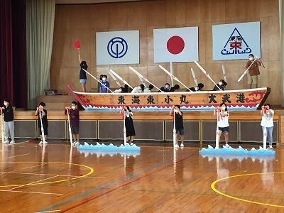 本校の伝統といえばもう一つ「櫂伝馬踊り」があります。本日5校時、5年生が4年生に対してこれまで練習してきた成果を披露しました。4年生が見ているとあってこれまで以上に緊張感もあり、本年度に入って一番の出来映えだったと思います。5年生の思いに応えながら、4年生が「櫂伝馬踊り」を自分たちのものにしてくれることを楽しみにしたいと思います。