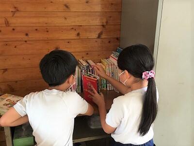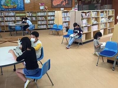 5月11日(水)午前中に降った雨で運動場は水たまりがいっぱいです。昼休み時間、校舎2階の図書室に行ってみると、たくさんの子どもたちの顔が見られました。本を借りている子やたたみ、椅子に座って本を読んでいる子、(担当の先生や図書委員会の友だちとおしゃべりしたくて来ている子たちもチラホラ・・・)それぞれ思い思いの過ごし方をしていました。「晴耕雨読」雨の日は読書を楽しむのもいいですね。これからもたくさんの本と出会ってほしいと思います。