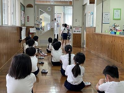 6月28日(火)今日も朝からいいお天気です。昨日の「梅雨明け」には驚きましたが・・・・。プールびらき2日目、今日は2・3校時に1年生、4・5校時に3年生がプールに入りました。1年生にとっては小学校のプールは初めてですので、入る前に教室前で丁寧に事前指導を行いました。「1年生いよいよプールへ!」の写真を撮りたかったのですが、来校されたお客様に対応していたら、もうプールから上がってシャワーも終わっていました。次回、また活動の様子をご紹介できればと思います。