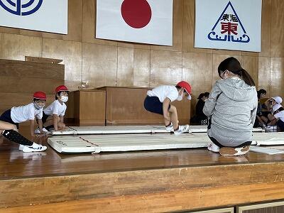 5年生は体育館で2年生の体力テストのサポートをしてくれていました。道具の準備、片付けや記録のカウントなど一生懸命に動いていました。さすが高学年です。
