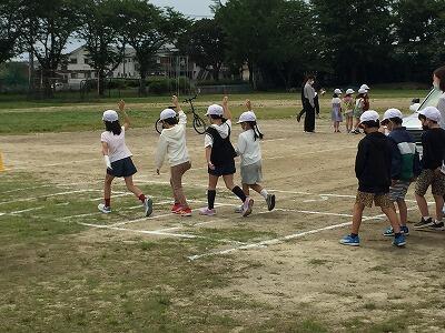 5月18日(水)今日は朝からいいお天気です。気持ちのよい風も吹いています。このタイミングで、運動場では3年生が体力テスト「ソフトボール投げ」にチャレンジしていました。運動場に描かれたラインからはみ出さないように、赤・黄・青のマーカーを目標に思い切り投げます。周りからの応援の声を受けながら、それぞれの目標に向けて一生懸命に取り組む3年生でした。