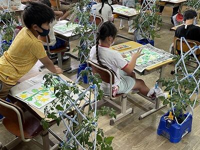 7月11日(月)、週末の夏の日射しをたっぷり浴びて、2年生が育てているミニトマトが赤く色づいてきました。子どもたちは、収穫の時を今か今かと待ちわびていることでしょう。毎日、暑い中、一生懸命に水やりの世話をしている2年生です。子どもたちのたっぷりの愛情が注がれているので、きっとおいしいこと間違いなし。2年生の保護者の皆さん、子どもたちがお土産に持ち帰るのを楽しみにしていてください。
