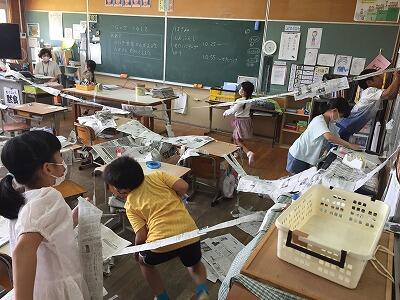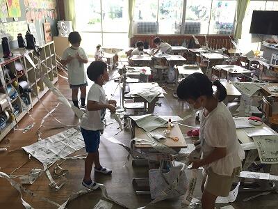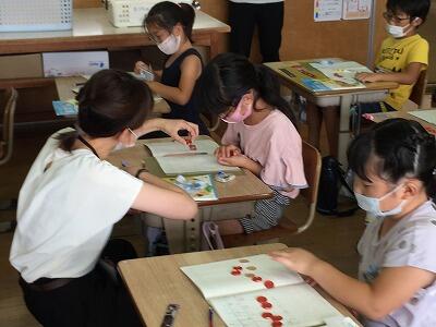 7月26日(火)今日も暑いです。朝のうちはまだ「暑さ指数(WBGT)」は「オレンジ~厳重警戒」だったのですが、お昼過ぎには「赤~危険:運動中止」になりました。今日の昼休み時間も、保健室の先生の放送で「室内で静かに過ごすこと」になりました。何をしているのかなあと教室を見回ってみると、「お絵かき」「ねん土遊び」「いすとりゲーム」「タブレット」「読書」「おしゃべり」などなど、思い思いに楽しく過ごしている様子が見られました。