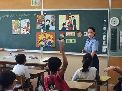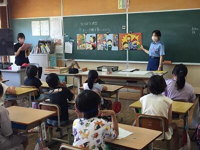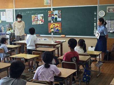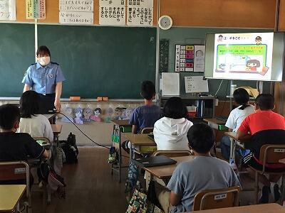 7月1日(金)に延岡警察署の方をお招きして「非行防止教室」を行いました。3校時は3年生2クラスにそれぞれ入っていただいて、「万引き」が多くの人にどれだけの迷惑をかけるか、おもしろ半分でしてしまったらどんなことになるのかについて具体的に教えていただきました。4校時は6年生2クラスで「インターネットトラブル」について学習しました。自撮り写真の投稿やSNSへの不適切動画のアップが、自分・保護者・関係の人にどれだけの被害を与え迷惑につながるのかを、映像をとおして深く考えることができました。どちらの学年の子どもたちにとっても、今後の自らの行動を考えるとても良い機会になったと思います。
