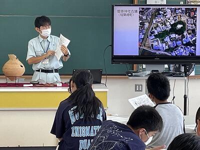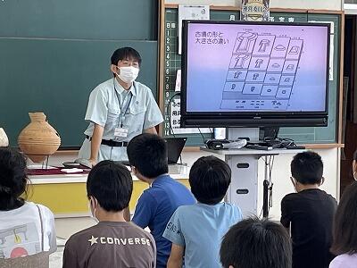 7月5日(火)3・4校時、市文化財・市史編さん課の甲斐康大さんをお招きして、6年生が地域の歴史や昔からある建造物について学習しました。たくさんの写真や資料を準備してくださっていて、教科書で学んだ歴史と自分たちの地域にもある史跡や文化財がつながっていることを実感することができました。その時代に地域の人々がどんな暮らしをしていたかについても話してくださり、子どもたちは興味深く聞いていました。この学習をきっかけに地域の歴史にさらに目を向け、学びを深めてほしいと思います。