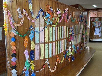 7月7日(木)七夕です。1年生教室前、3年生教室前オープンスペースの壁には、子どもたちの願いが書かれた短冊がきれいなかざりとともに貼られていました。読んでみると、子どもたちがいろいろな思いや考え方をしていることがよくわかります。思わず微笑んでしまう、心温まる願い事もありました。お子さんがどんな願い事を書いたのか、今日帰ったら尋ねてみてください。