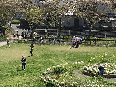 4月8日(金)今日から授業とともに給食、昼休み時間も始まりました。昼休み時間は、感染対策を考慮してフラワーランドに2・3年生、運動場に4~6年生と学年単位でエリアを分けて、学級ごとに過ごすようにしました。クラスの新しい友だちや先生と楽しそうに遊んでいる姿が見られました。