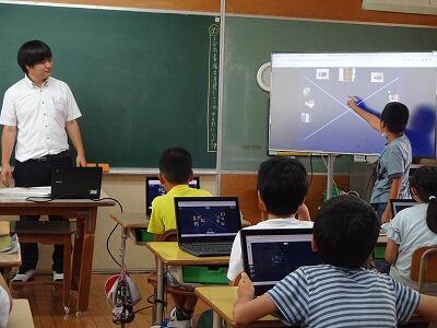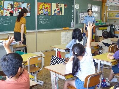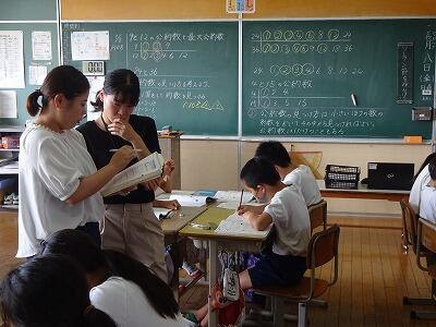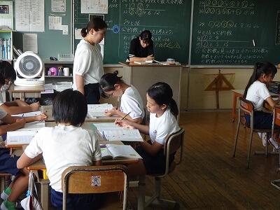 9月8日(金)1校時、5年1組の外国語科では新しいALTの先生をお迎えして外国語専科の先生とともに、楽しそうな英会話の授業が展開されていました。また、5年2組の算数科では少人数指導の先生も入ってのT・T(ティームティーチング)の授業が行われていました。次の単元から5年生の算数科でも少人数指導をスタートさせる予定です。新しい先生に入っていただき、新しい形を取り入れながら、子どもたちの学びを深めていけたらと考えます。