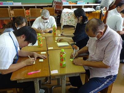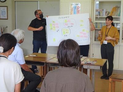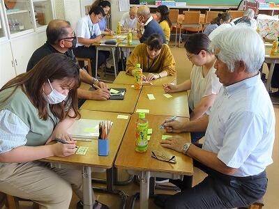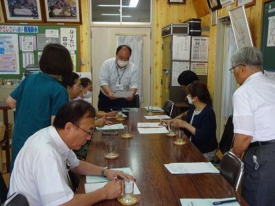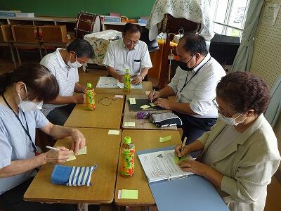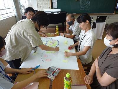 8月25日(金)15:00から音楽室において、コミュニティ・スクール熟議「しゃべり場」を開催しました。学校運営協議会委員の皆様、校区内の区長・公民館長の皆様14名をお迎えして「子どもの安全」をテーマにグループ協議を行いました。各グループにおいて、文字どおり、学校職員と地域の方との積極的な「おしゃべり」が展開され、とても有意義な時間となりました。この場で出された貴重なご意見を「子どもたちの安全」につなげられるように今後取り組んでいきたいと思います。ご参加いただいた皆様、本当にありがとうございました。