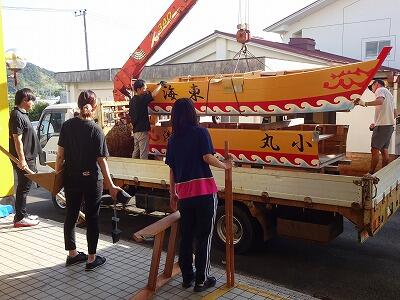8月17日(木)です。夏休みも後半に入りました。今日は8月20日(日)の延岡市郷土芸能大会での「櫂伝馬踊り」発表に向けて、4年生が練習を行いました。暑い中でしたが、体育館で何回か練習を重ねるうちに息も合ってきて、元気な声を聞こえるようになってきました。それに先立って、発表用の伝馬船をクレーン付トラックで運んでいただきました。ありがとうございます。当日は、4年生44名が出場予定です。11時までに野口遵記念館ロビー集合です。児童は体育服で来ます。当日、参加できなくなった場合は学校携帯にご連絡ください。保護者の皆様、どうぞよろしくお願いします。