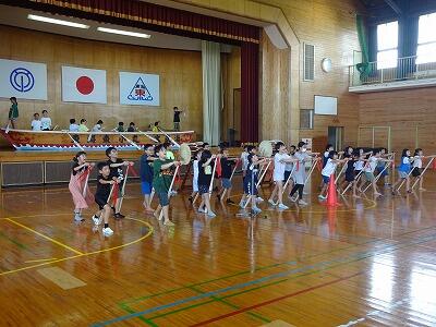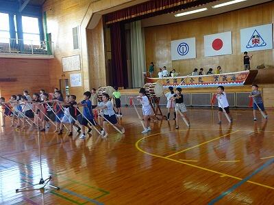 7月28日(金)1校時、4年生が延岡市郷土芸能大会発表に向けて「櫂伝馬踊り」の1学期最後の練習に取り組みました。野口遵記念館での発表当日に向けて、隊形や動きを本番を想定しながら練習しました。夏休み中あと1回練習をして、8月20日(日)「延岡市郷土芸能大会」野口遵記念館12:57ごろ発表予定です。
