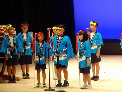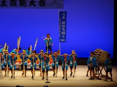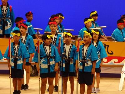 8月20日(日)野口遵記念館で、第33回延岡市郷土芸能大会が開催されました。本校は4年生44名がこれまで練習を重ねてきた「櫂伝馬踊り」を披露しました。たくさんの観客を前に、子どもたちは緊張しながらも元気に、堂々と練習の成果を発表することができました。ご指導いただいた保存会の皆様、ご協力いただいた保護者の皆様、本当にありがとうございました。